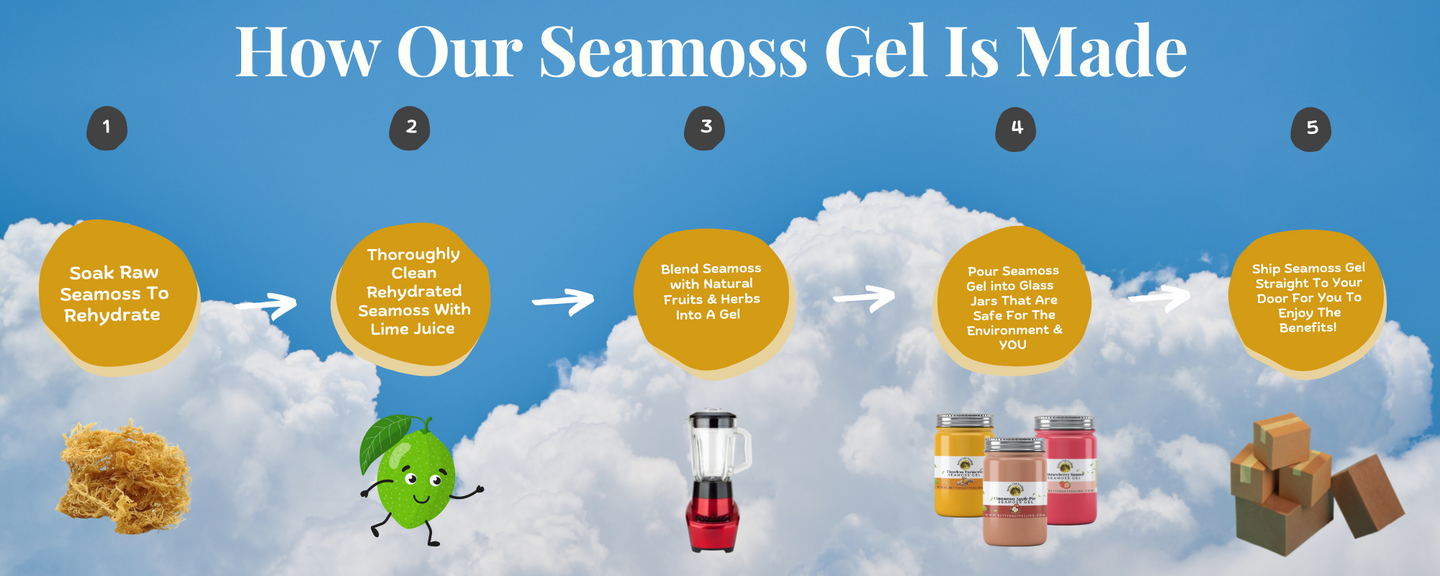 Our Sea Moss Gel is washed thoroughly, soaked overnight with spring water & lime, washed again and then finally blended to a silky smooth consistency for your consumption. Our flavored moss can be eaten raw straight from the jar or added to smoothies. We recommend taking 1-2 tbsps a day.